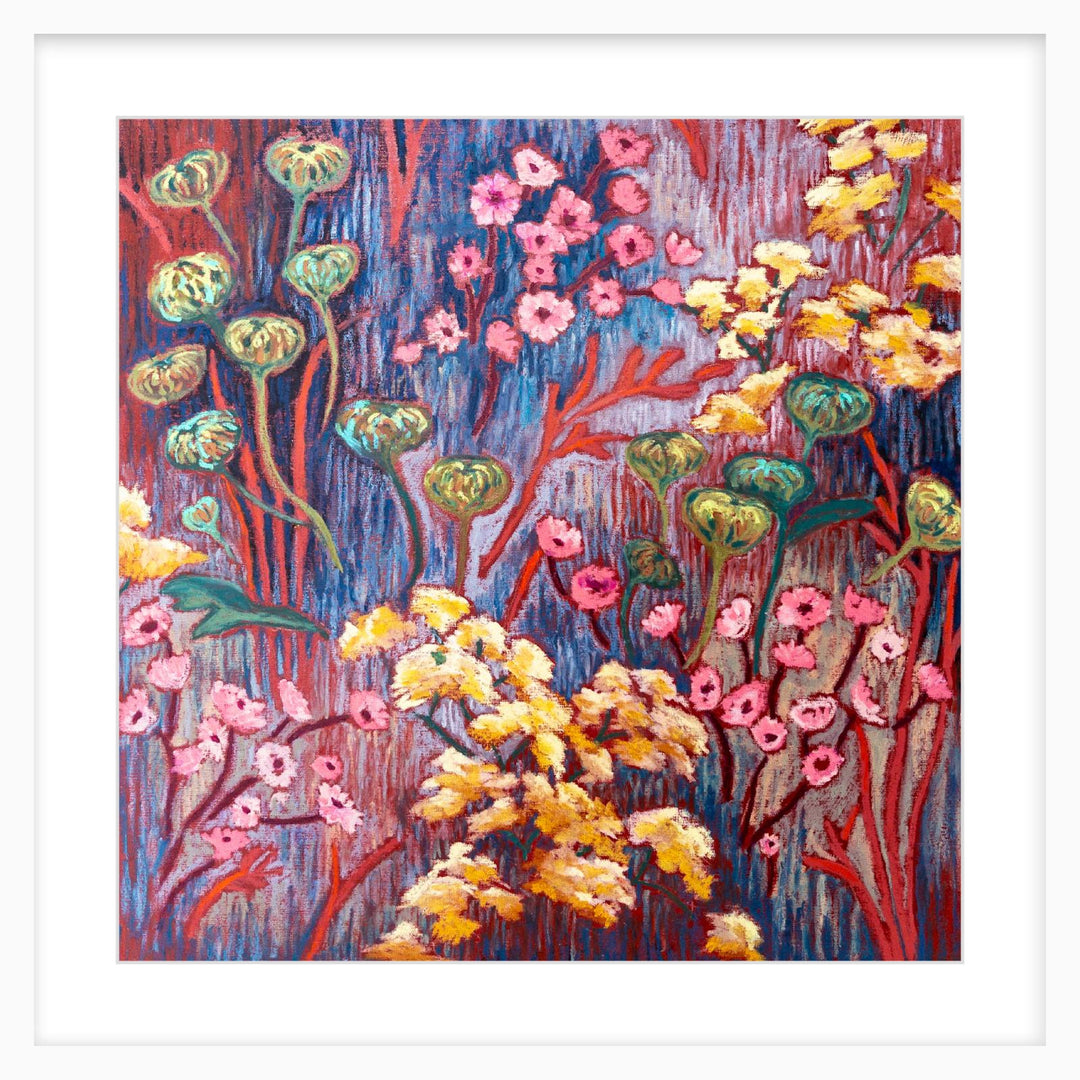 It is a beautiful mix of botanicals and landscapes created with vibrant colour and movement.