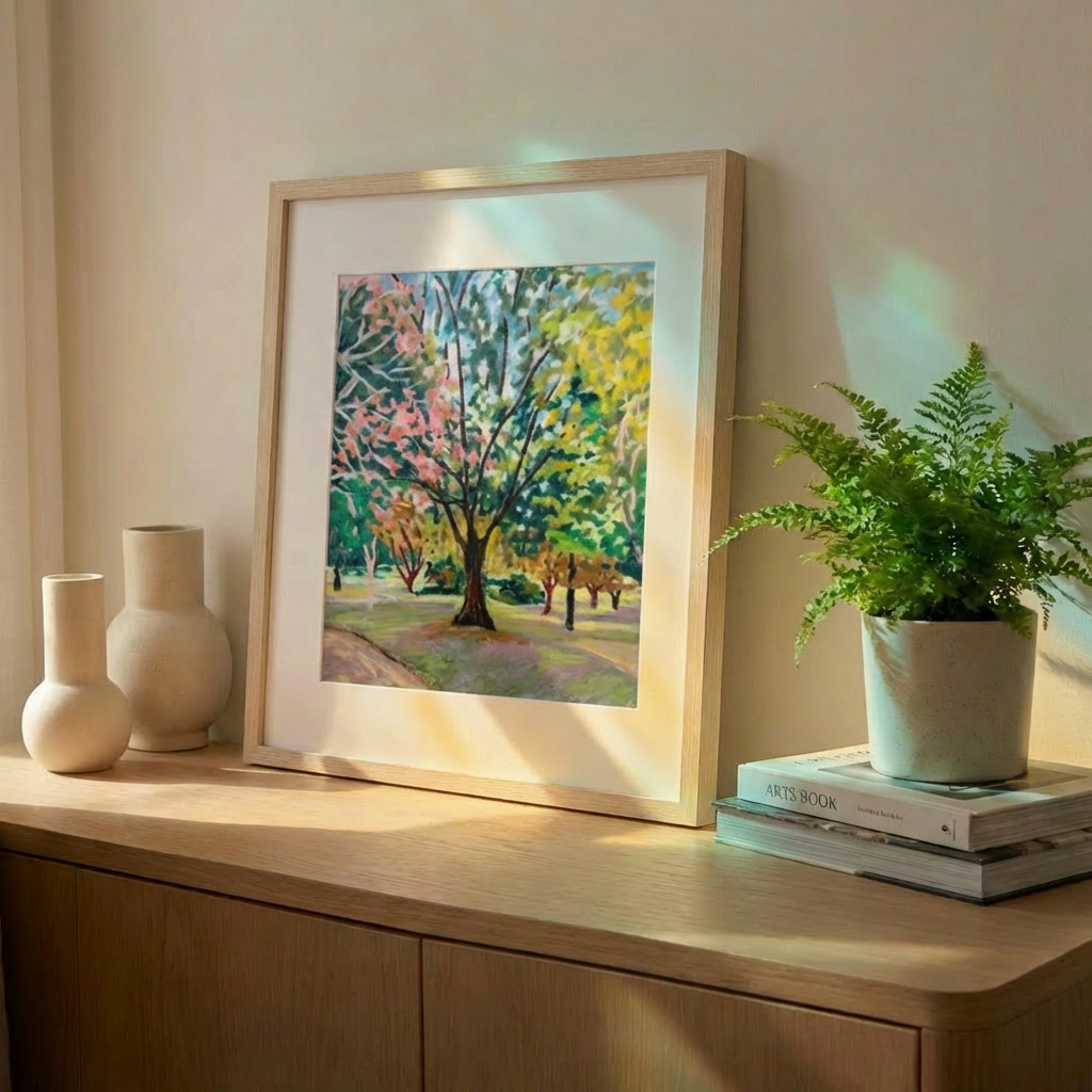Artworks can be framed in other colours see: ejwoodart.co.nz/pages/frames-sizing
