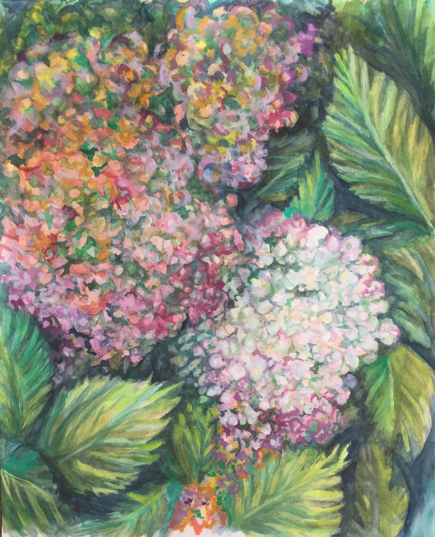 Inspired by the fading colours of end of season hydrangeas that were along the road during late summer travels in the North Island.