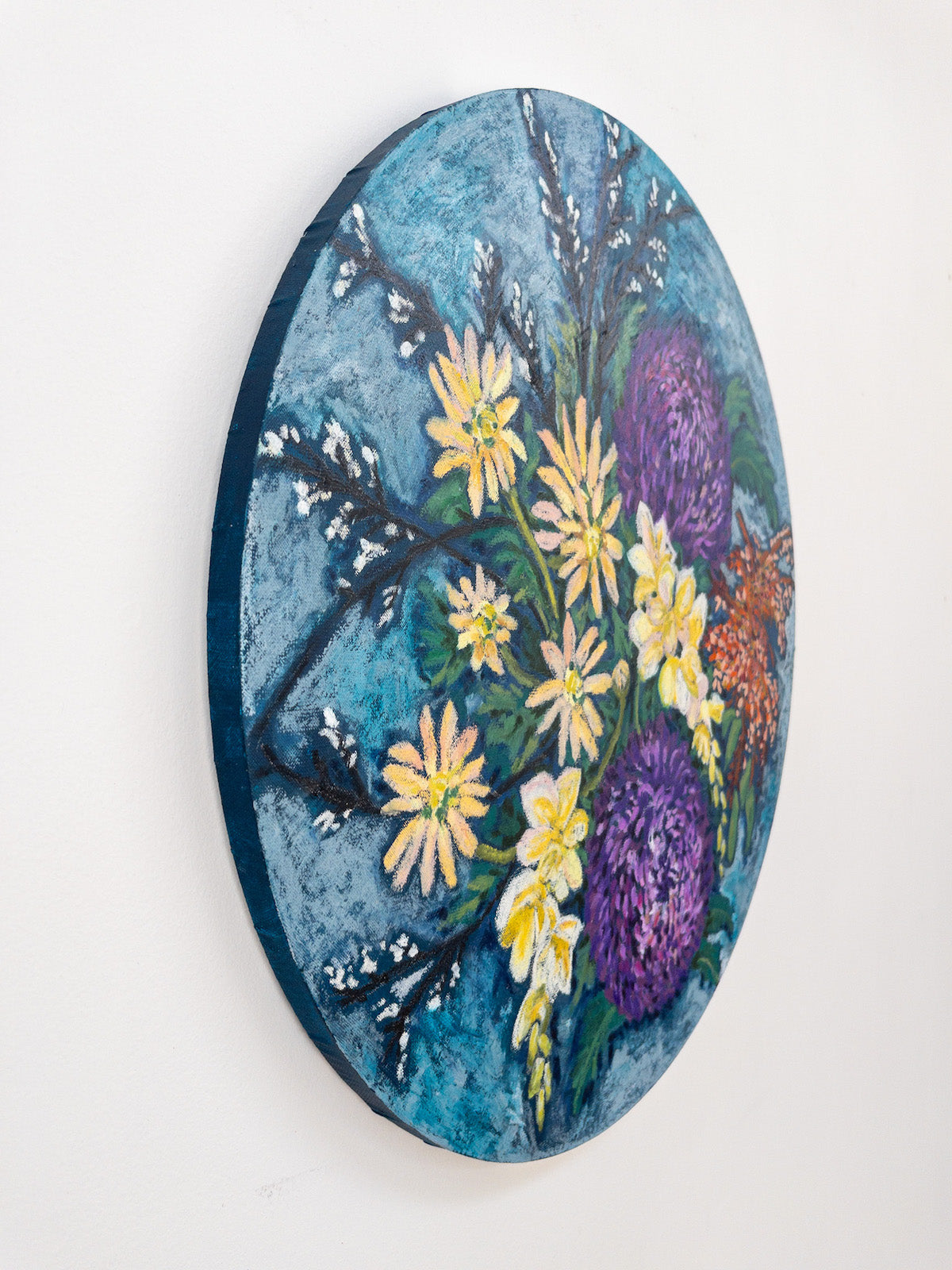 This is an original artwork. It is 50cm x 50cm round canvas, oil pastel wth matt varnish. 2cm depth. Artwork comes ready to hang.